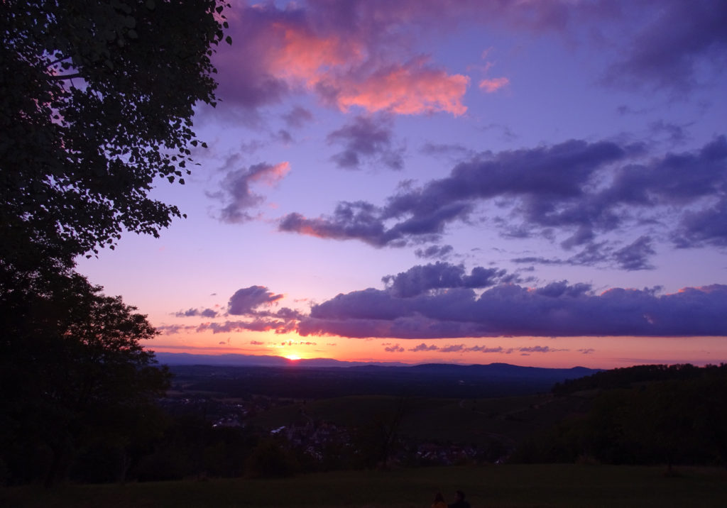 Als wir zurück gekommen sind, waren noch in der Limette Eis essen. Dann waren bei einem richtig schönen Schlafplatz mit Blick runter ins Rheintal und auf die Vogesen.