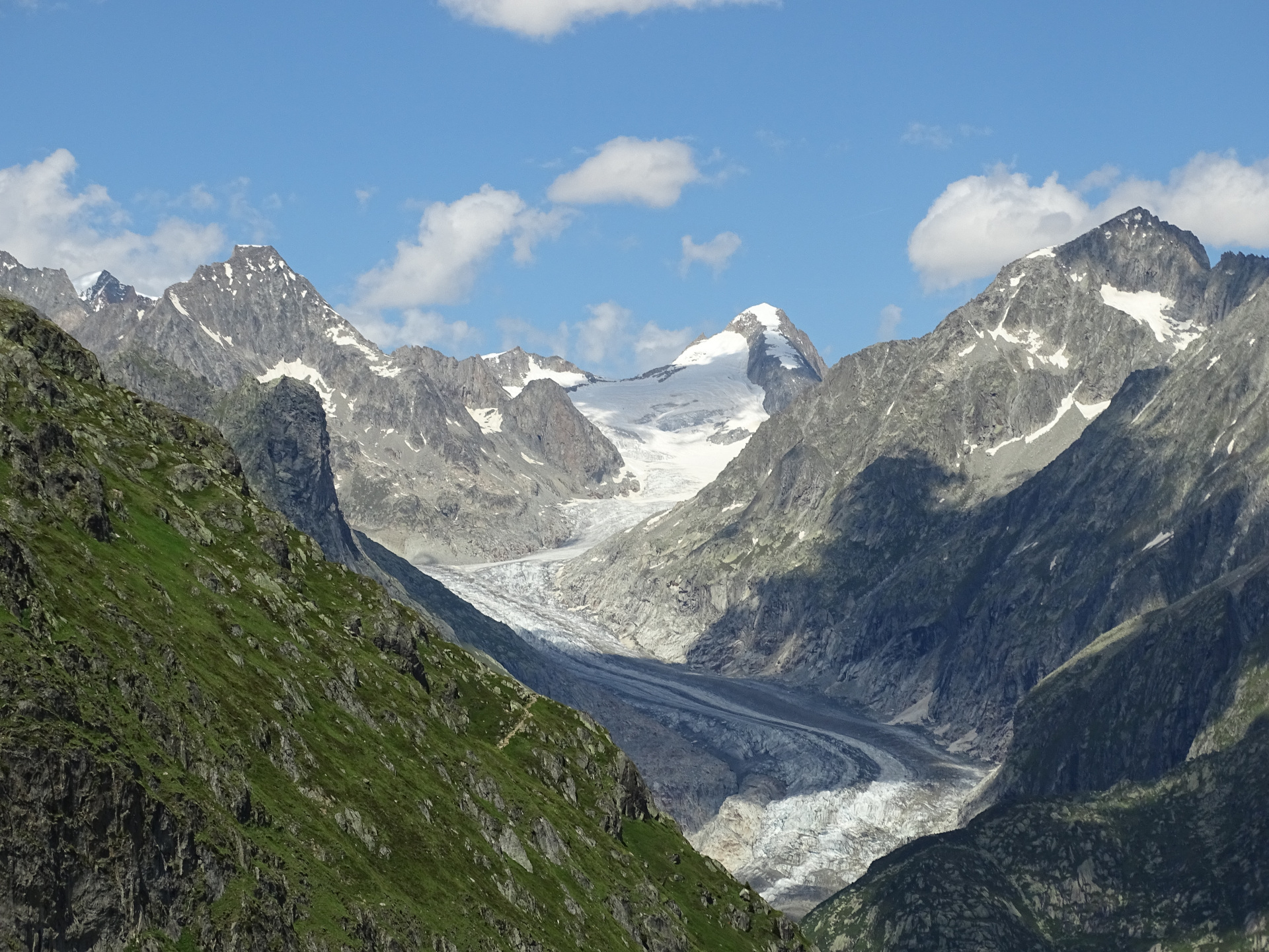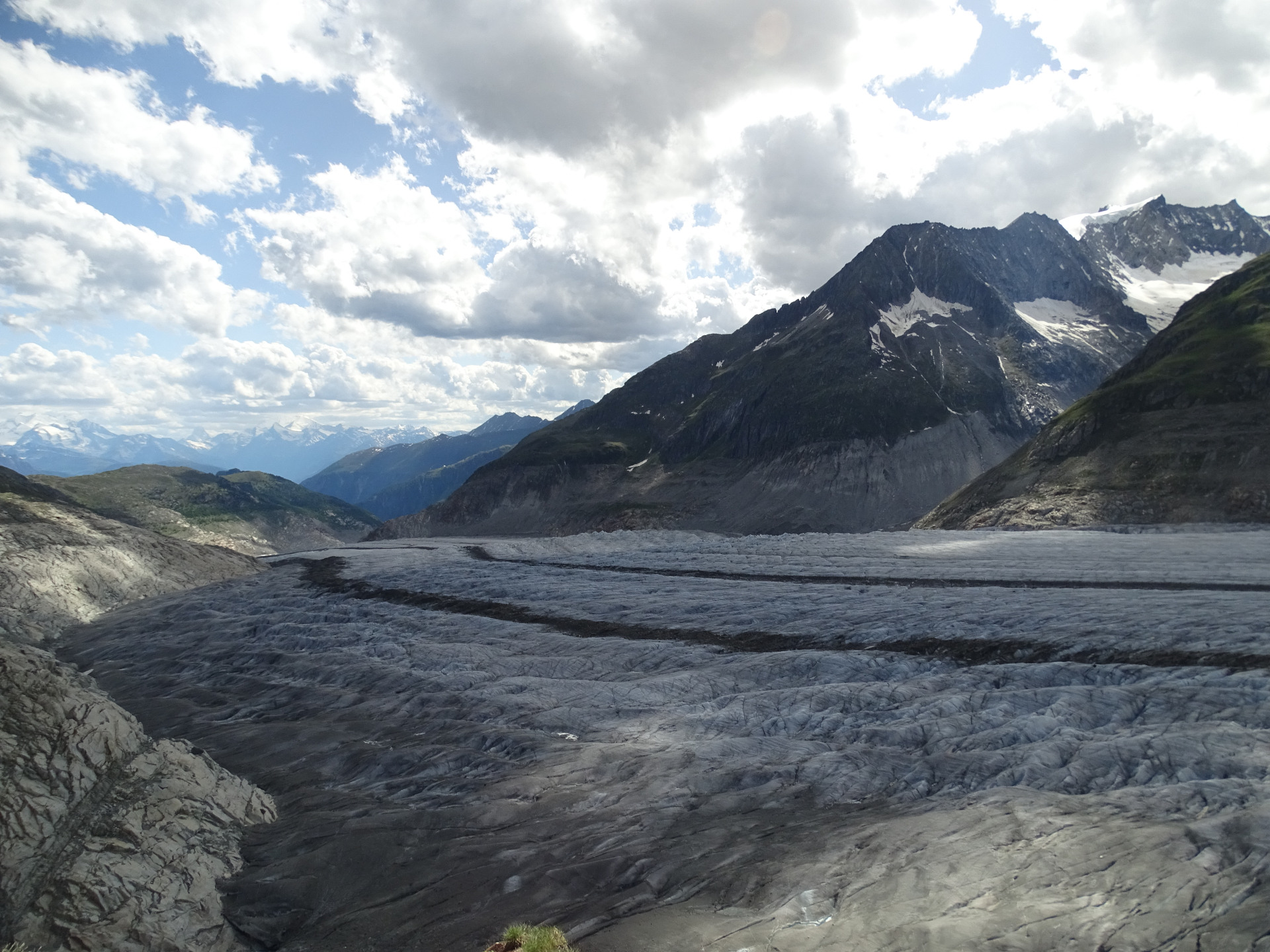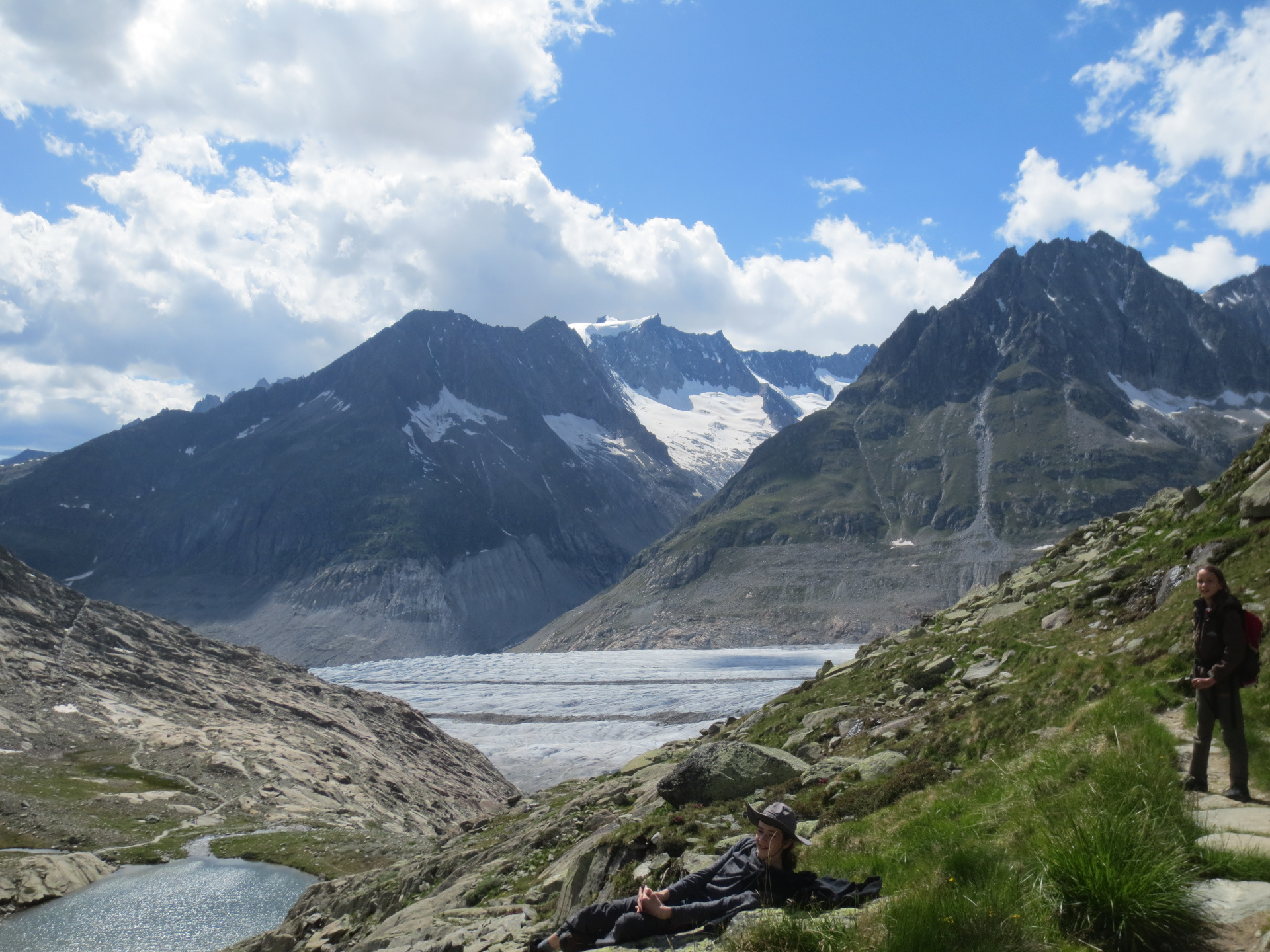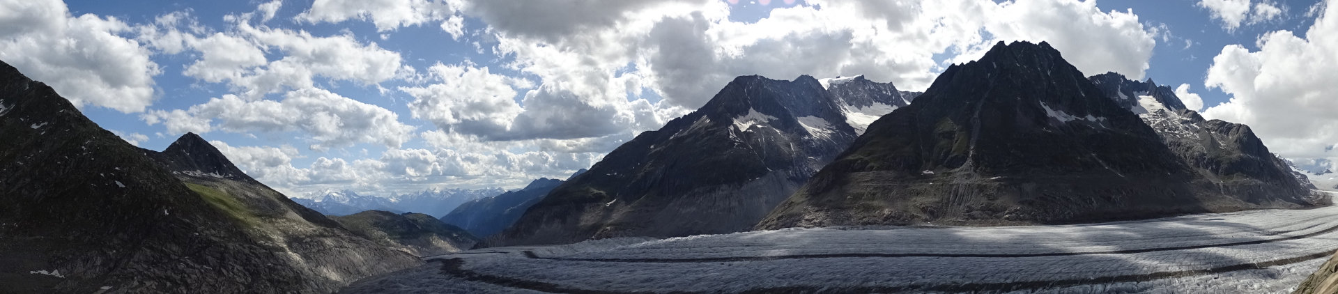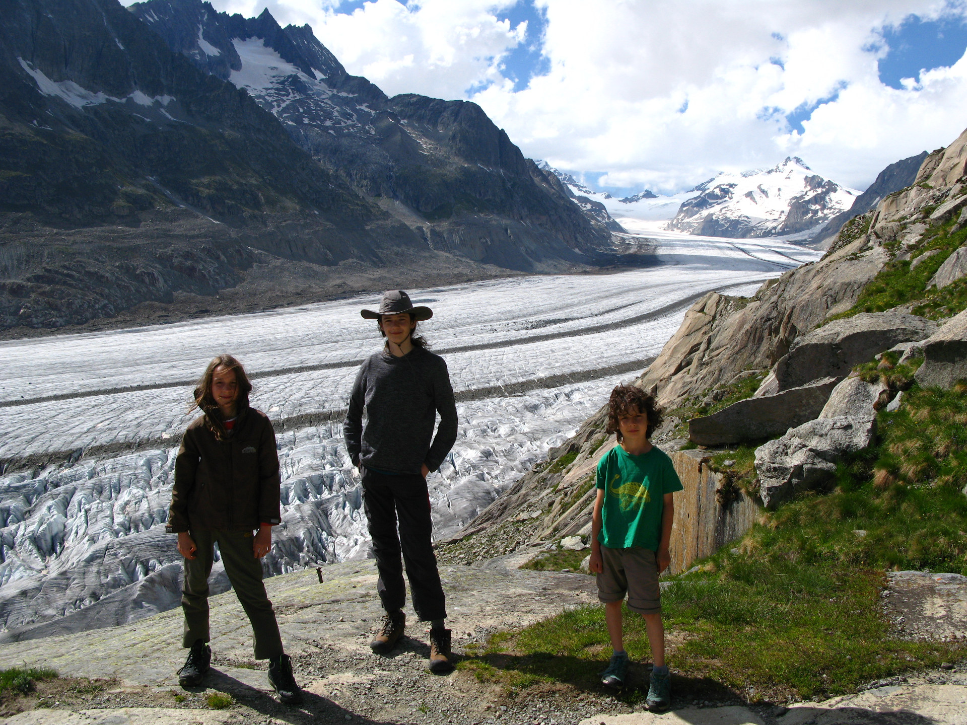 Am Anfang sind wir 1200 Höhenmeter mit der Gondel innerhalb von fünf Minuten bis zur Fiescheralp gefahren. Als wir dann oben waren, wollten wir den größten und längsten Gletscher (Länge beträgt 22,6 km) der Alpen besuchen.