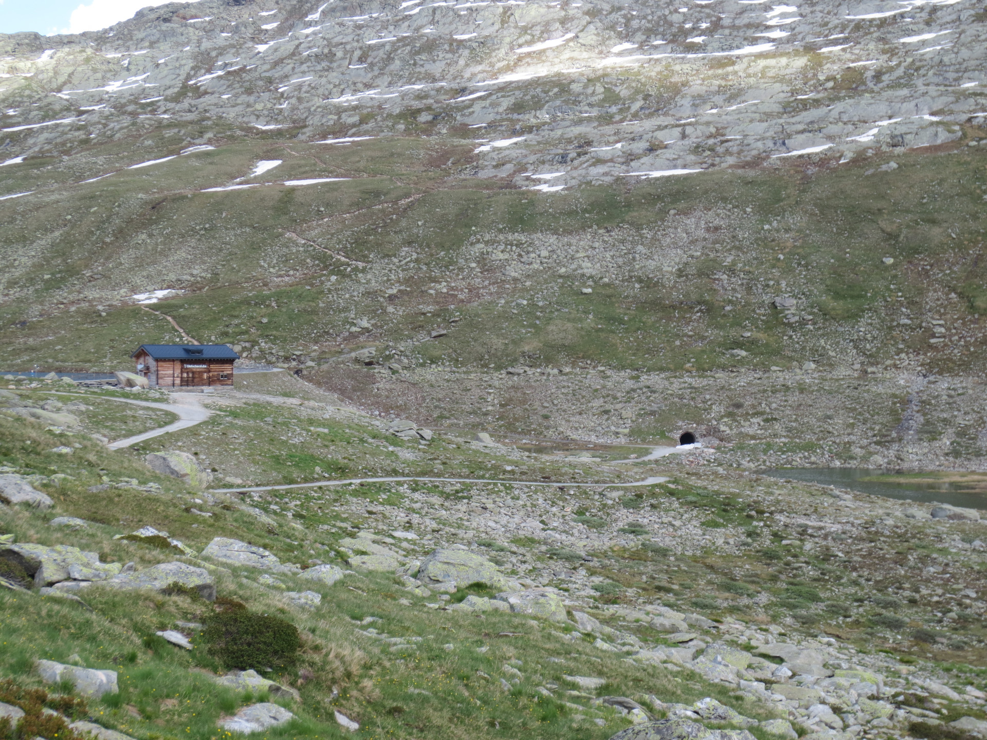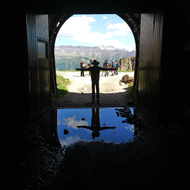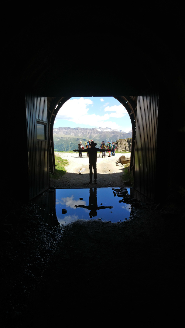 Nachdem wir so eine Stunde gelaufen sind kamen wir an einen sehr langen Fußgängertunnel (1km), wo es auch richtig kalt und feucht war. Auf der anderen Seite konnte man dann schon den Gletscher sehen.